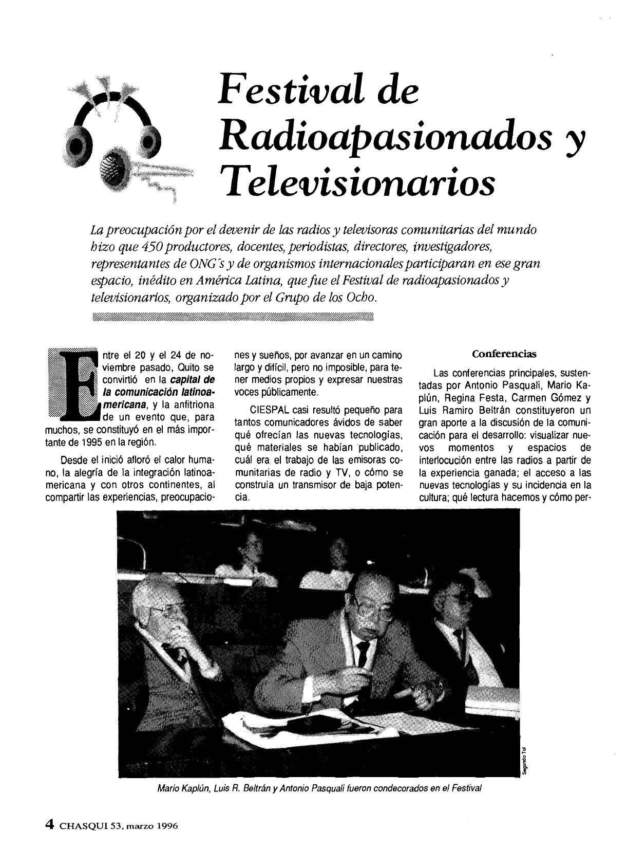 Hace 30 años, en noviembre de 1995, celebramos en Quito el 1er Festival, que lo llamamos «Radioapasionados y Televisionarios”. Fue un encuentro inolvidable en el que nos reunimos muchas organizaciones de América Latina y el Caribe trabajando por el derecho a la comunicación, especialmente desde los medios de comunicación populares y comunitarios.